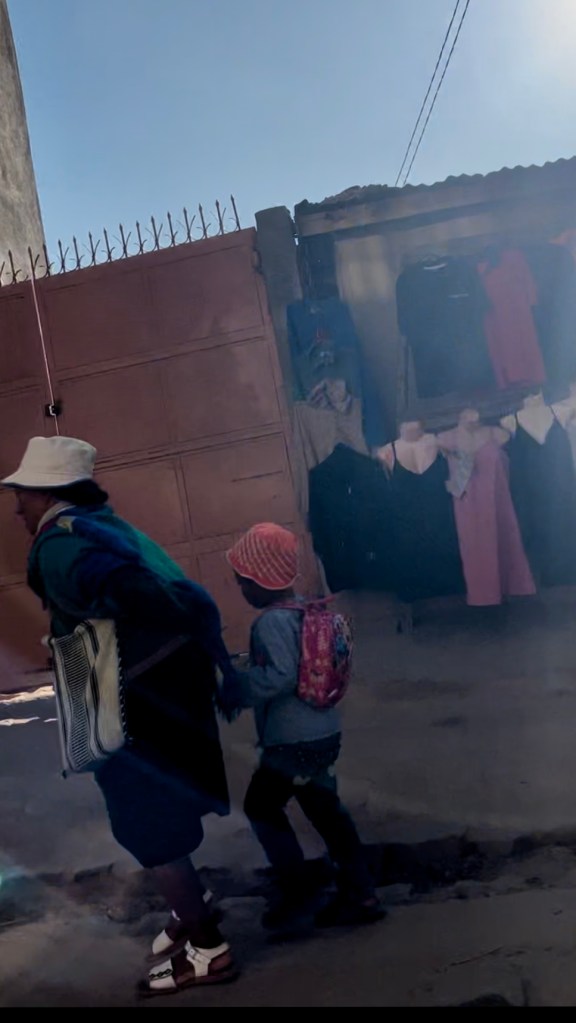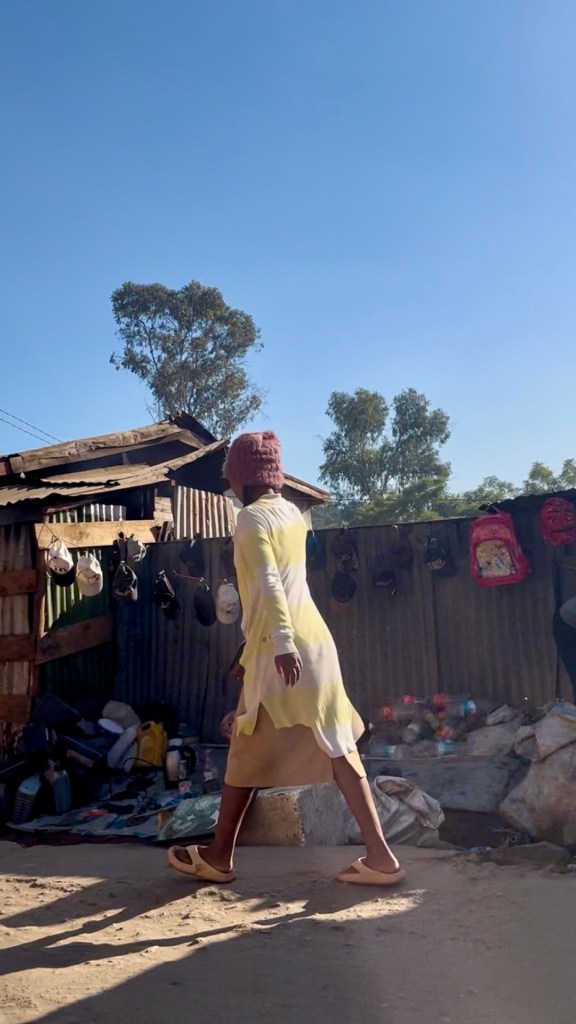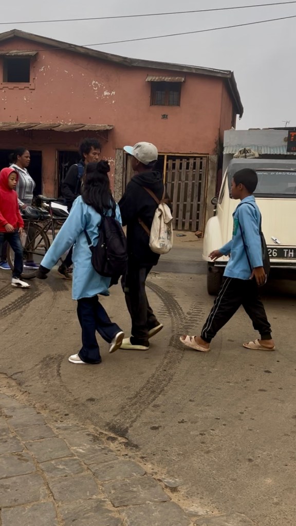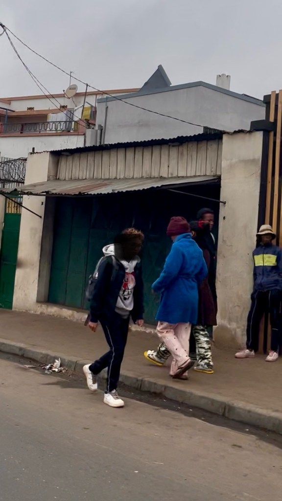 Les plus beaux vêtements des Tananariviens sont de sortie le dimanche mais un écrit à part entière devrait se dédier au sujet de la mode tananarivienne les jours de messe. Les autres jours, nous trouvons pour le bas du corps : jogging à outrance – sûrement plus confortable pour les longs trajets de marche, pantalons, pantacourts, jupes très souvent et robes bien sûr. Selon la règle de la non-règle, les pièces choisies ne s’assortissent pas — et je trouve ces combinaisons plutôt agréables visuellement, plus stimulantes que les combos vus et déjà-vus dont les villes de chez moi regorgent. Certain·e·s chef·fe·s du goût, ou jejo en malgache (prononcé tchétchou), assortissent tout de même un pull à un béret, une chemise à la couleur d’un sac, ou des sneakers à un t-shirt fluorescent. Détails d’élégance malgache.