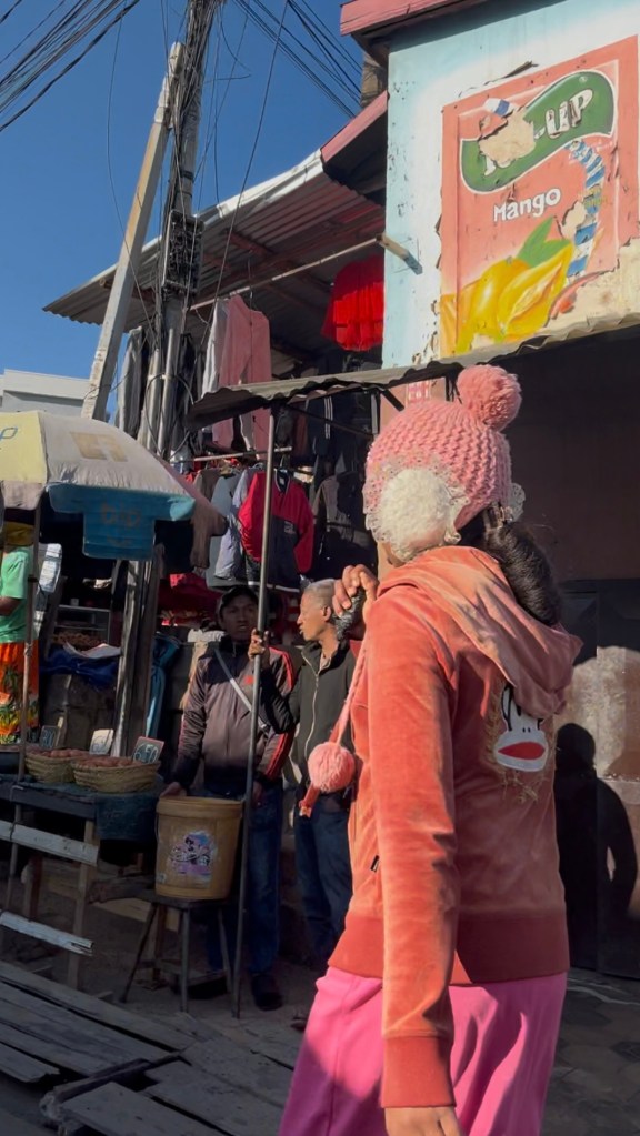 Nous trouvons essentiel de parler des manteaux, doudounes, blousons rembourrés et tout autre attirail que les gens de chez moi ne sortent qu’en dessous de 10°C — pour les moins courageux. Ici, ces pièces sont de sortie dès le seuil des 20°C dépassé. Et ce, pour le plus grand confort des habitants, car le froid de Tana a quelque chose de plus froid que les autres froids, si j’ose dire. Un froid venteux, sournois, qui vous glace les os, même à 20°. Les doudounes sans manches font fureur ici, compte tenu de cette météo insidieuse. Moi qui me demandais pour quelle zone du monde ces vêtements pourraient bien être sincèrement utiles, me voilà renseignée.