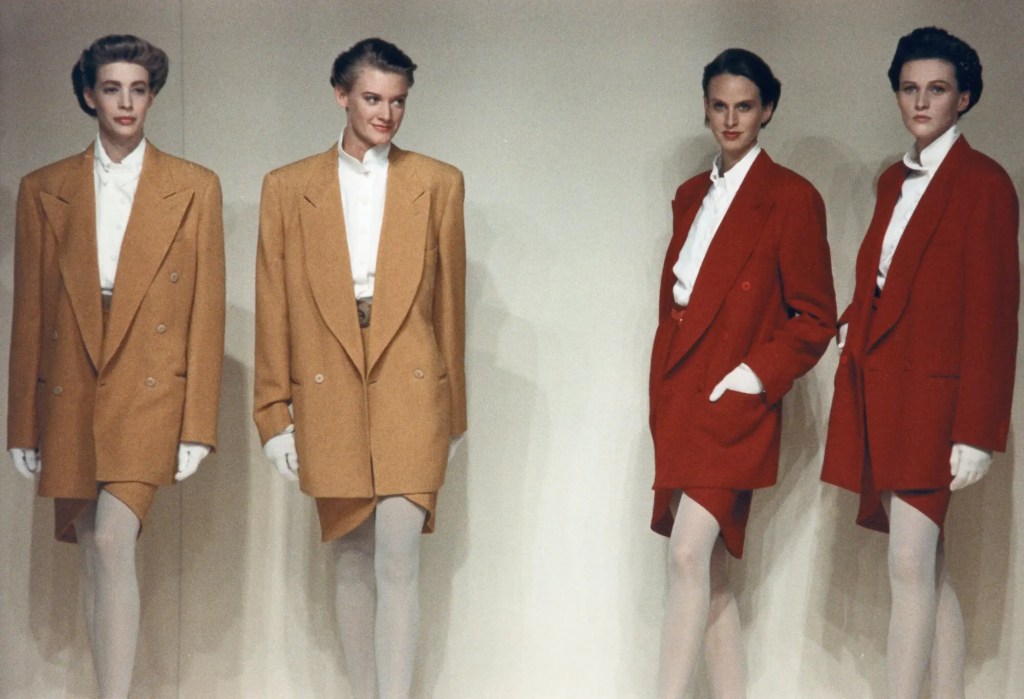 Seulement, cette idée de la femme d’affaire américaine, est une figure sociale créé de toute pièce par un ensemble de productions culturelles : les livres – comme le best seller éponyme à l’association, Dress for Success de John T.Molloy (1975) ou les séries télévisées comme Dallas, ou Dynastie sorties dans les années 80. Le rôle de la presse féminine, ou encore les collections de mode (Armani, Ralph Lauren, …)5 sont considérables dans la création d’une image commune de la femme d’affaire : majoritairement blanche, svelte et jeune.
